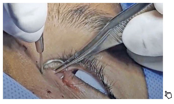 Eyelid trauma with canalicular laceration is an ophthalmic emergency requiring prompt diagnosis and treatment to preserve the function of the lacrimal system and prevent late complications1-3. These lacerations are commonly caused by blunt or penetrating trauma to the medial eyelid region and are often associated with domestic, sports, or road accidents2,3. The case shown in the video involves a pet dog bite, a trauma mechanism that frequently causes complex eyelid injuries2.