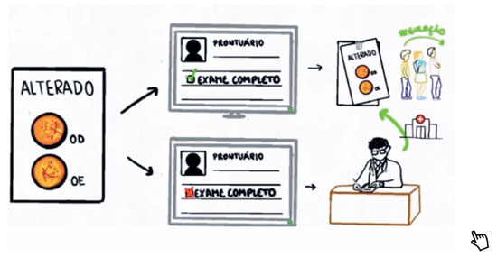 No Brasil, cerca de 20 milhões de pessoas vivem com diabetes e aproximadamente 36% desenvolvem retinopatia diabética (RD)1, uma complicação retiniana capaz de provocar consequências irreversíveis2, o que motivou a criação do projeto Fotografando Olhares, apresentado no vídeo vencedor da categoria "Quero ser um R1", desenvolvido pela Liga Acadêmica de Oftalmologia da PUC Minas, que passou a ocupar um papel fundamental no município de Betim. A iniciativa é realizada bisemanalmente no Centro de Referência em Especialidades Divino Ferreira Braga, com apoio do retinógrafo portátil Eyer, que obtém imagens de alta qualidade da retina sem necessidade de dilatação pupilar, viabilizando a triagem dos pacientes e análise remota das imagens, ampliando o acesso ao diagnóstico oftalmológico. Também é feita a coleta de dados clínicos e antropométricos, e a orientação sobre saúde ocular e estilo de vida. De acordo com o resultado laudado, o paciente é encaminhado, ou não, para consulta oftalmológica completa. Portanto, a complexidade do manejo da doença e a necessidade de monitoramento constante evidenciam a importância do diagnóstico oportuno e tratamento precoce3, reduzindo o risco de dano visual irreversível. Em seis meses de atuação, diversas vidas tiveram suas trajetórias de cuidado transformadas positivamente pelo rastreio precoce.